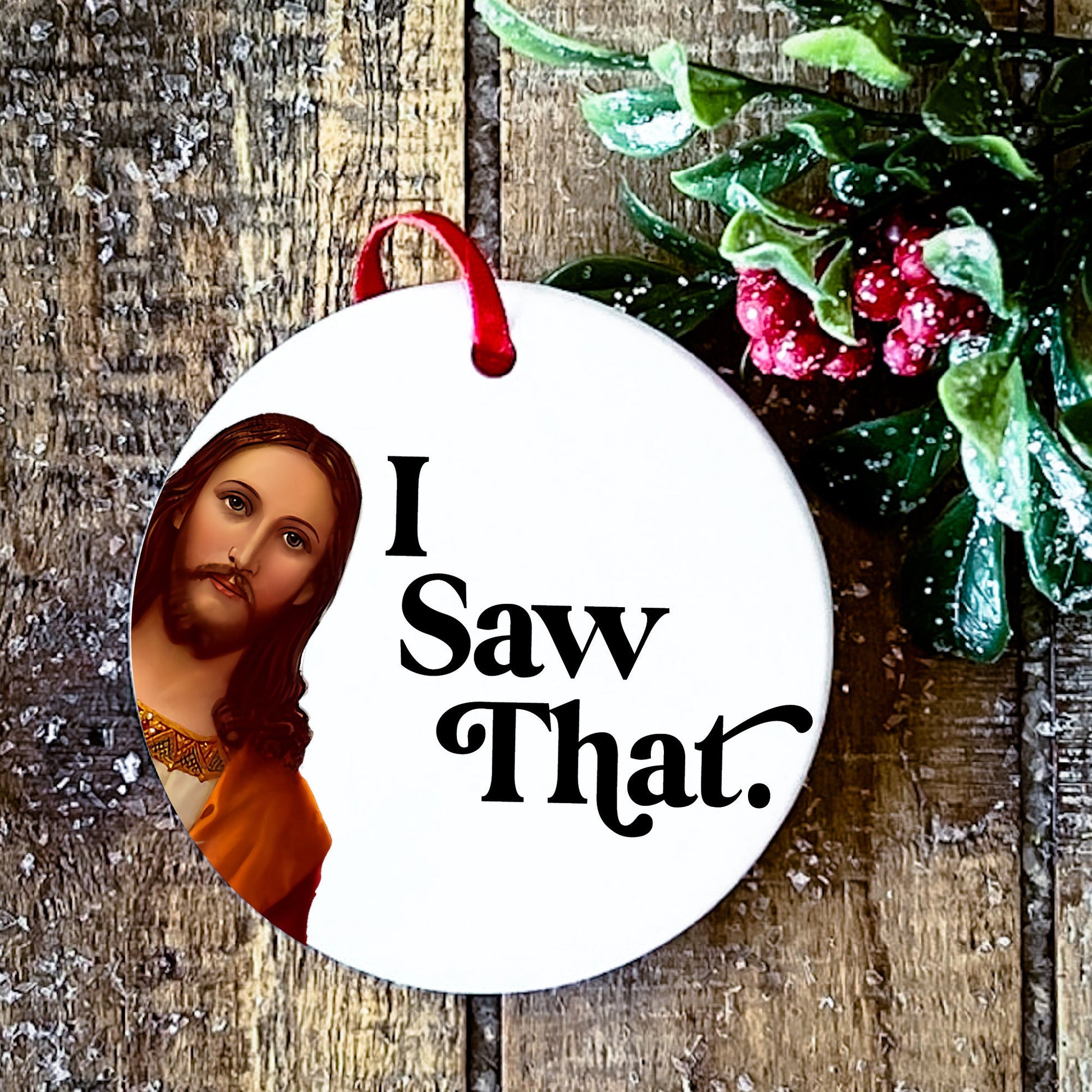 🎁I Saw That Jesus Ornament...Funny for sure and a great gift, stocking stuffer!🔥Whether it is making promises, make a wish or experiencing Christmas or other scenes, let Jesus witness these together!