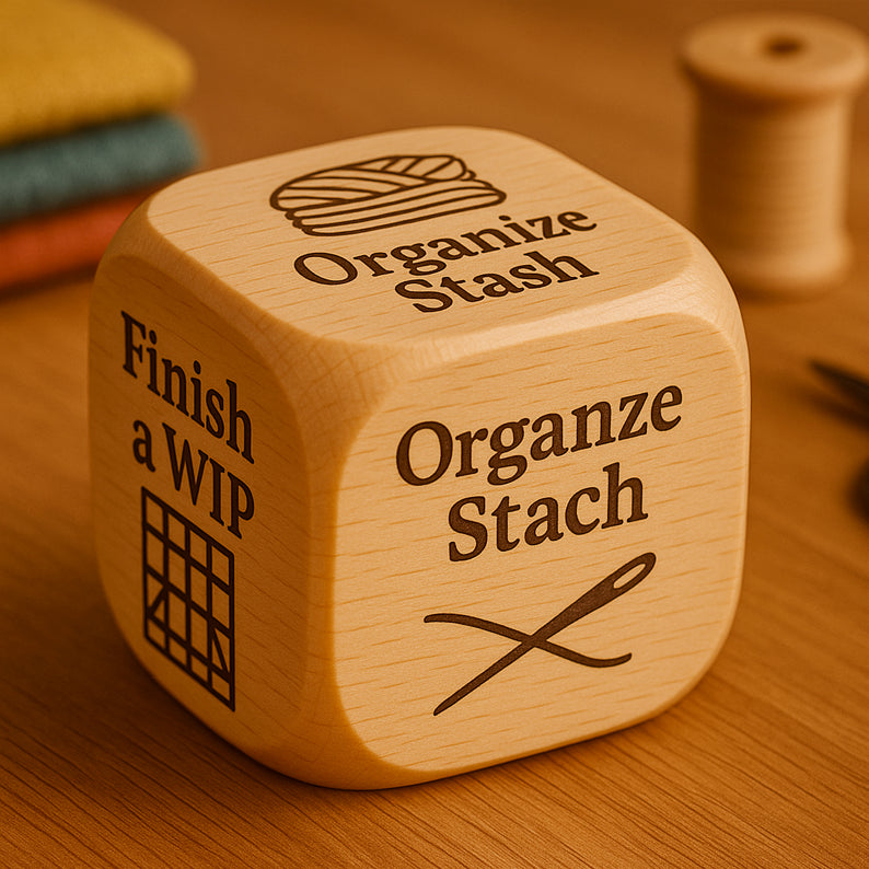 🧶Turn your crafting time into a game! This wooden knitting dice helps you decide your next move and adds a playful twist to your knitting or crochet sessions.