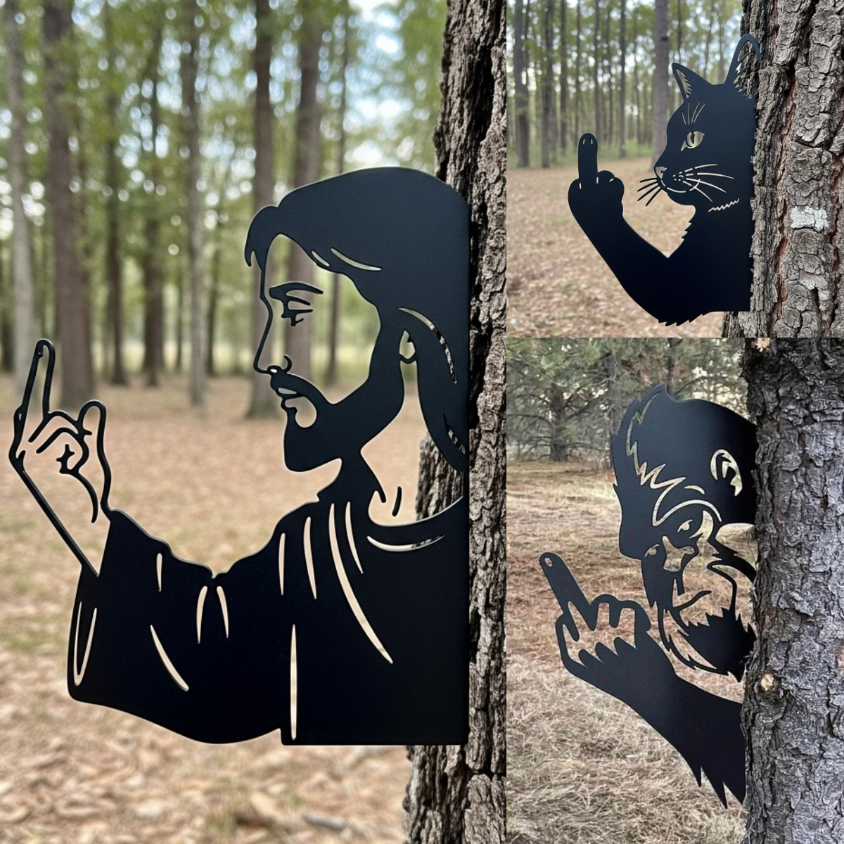🖕Crafted from durable materials, this quirky silhouette showcases Bigfoot sneaking around a tree or post, arm outstretched with one finger raised in classic rebellious fashion.